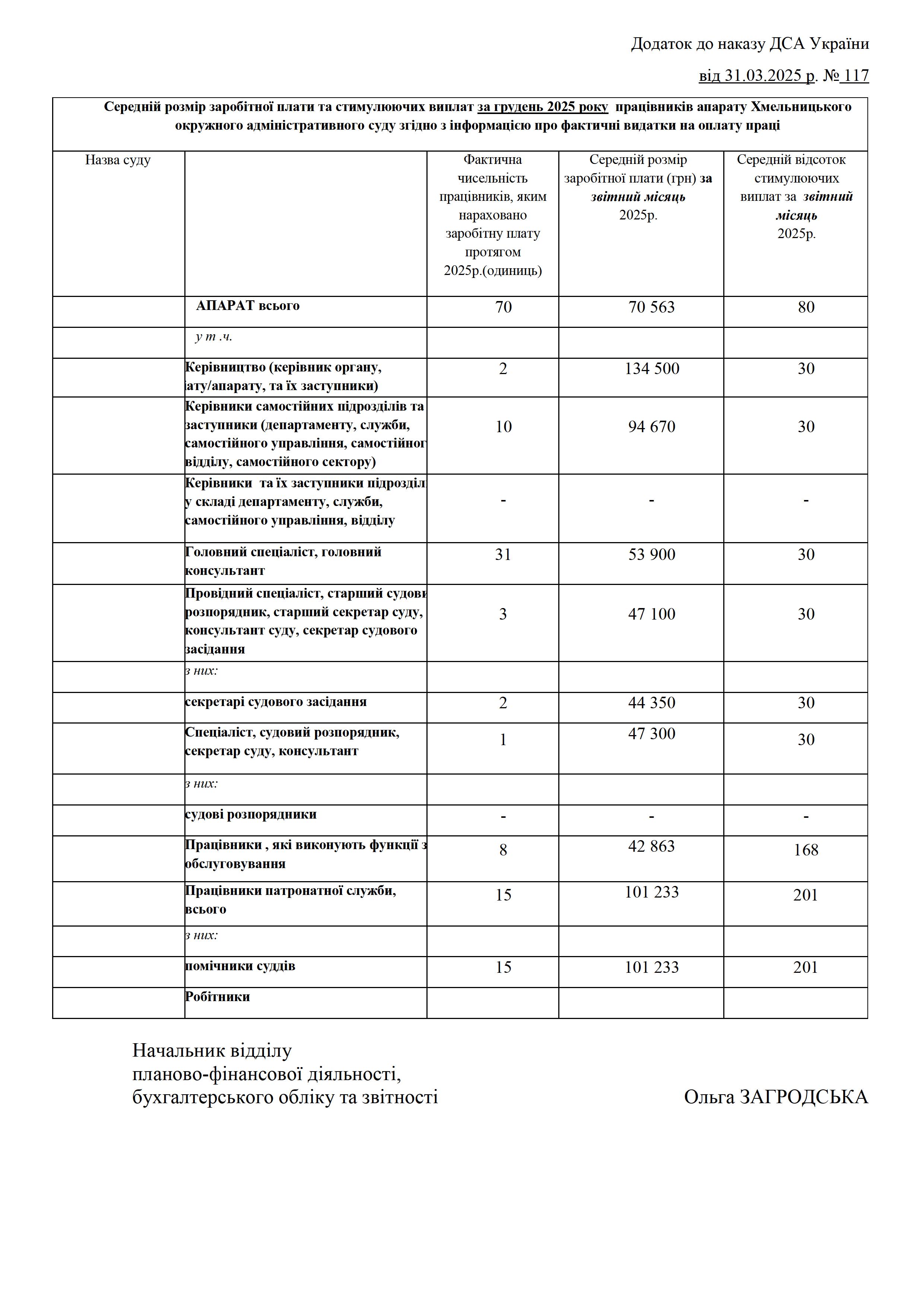 Середній розмір заробітної плати та стимулюючих виплат за грудень 2025 року працівників апарату суду
